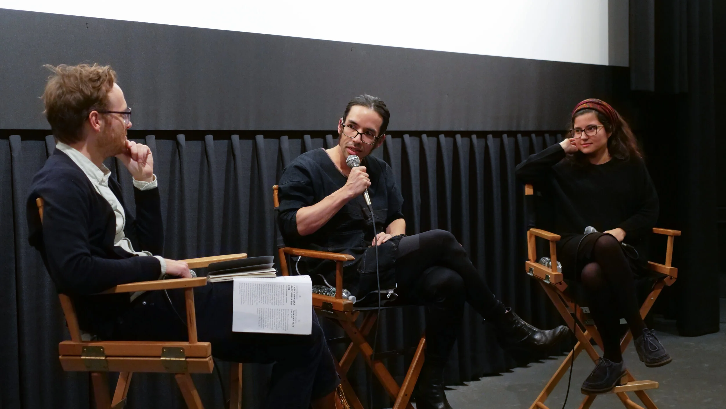 On Monday evening, November 4, 2019, Flaherty NYC hosted program three of a six- part series on the theme SURFACE KNOWLEDGE, curated by programmers Courtney Stephens and Mathilde Walker-Billaud. The screening took place at Anthology Film Archives and was co-presented with UnionDocs and Colgate University. Filmmakers Joshua Gen Solondz and Colgate Distinguished Global Filmmaker in Residence Maryam Tafakory were in person to discuss their screened work with writer, teacher, and curator, Leo Goldsmith. Monday night’s theme played on ideas of perception, projection, and the intersection of metaphysical with physical reality. It asks what happens when conscious awareness of these planes of cognition are restricted to a point of anonymity and distortion. All five films that were screen built upon each other in a way that became visually tense, inviting the audience into spaces that are simultaneously inaccessible: The solar system, ghost erotics, and ancient gymnasiums become places of subjective reflection by the filmmakers, who charged them with gravity and personal meaning.